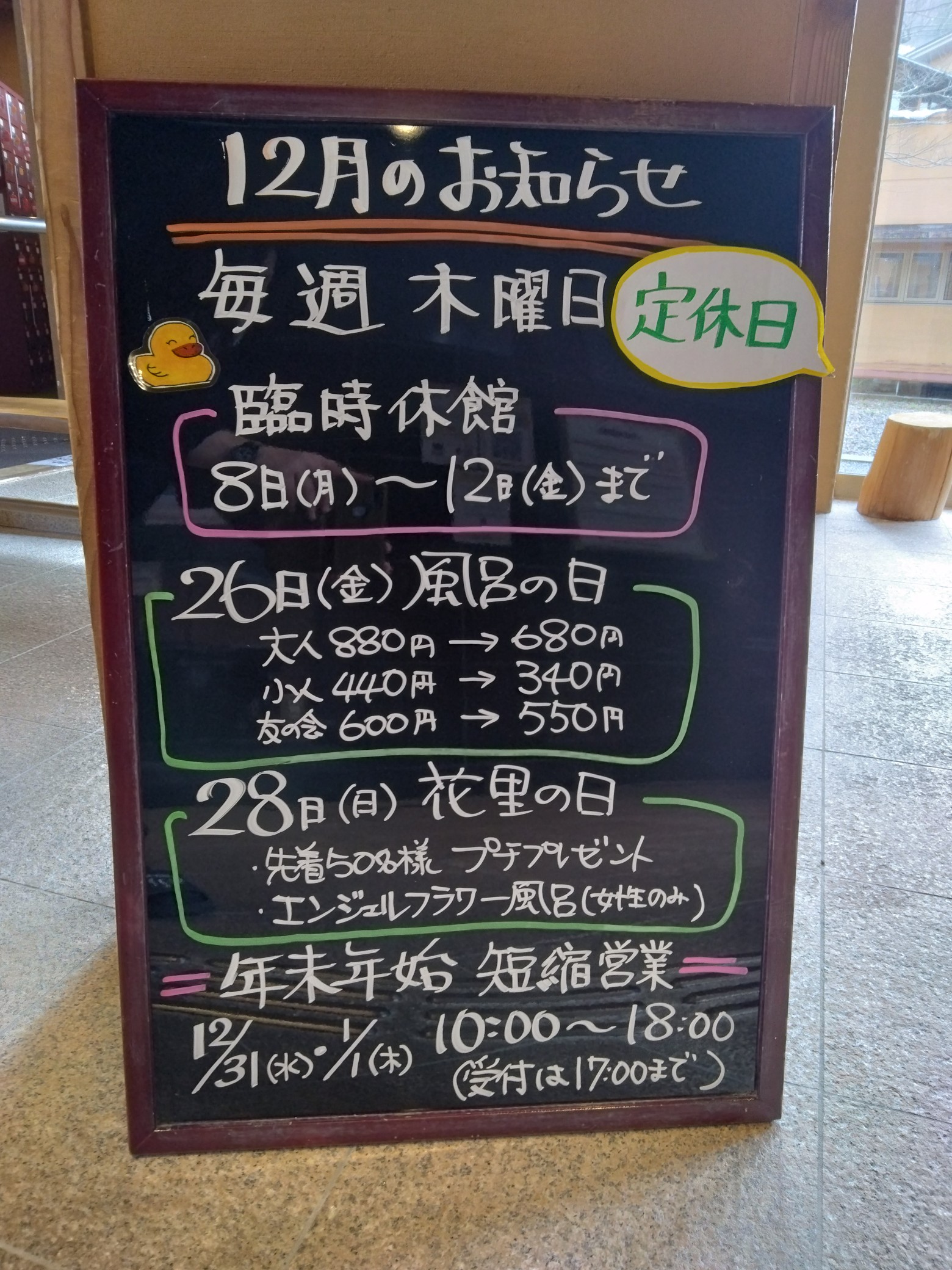 風呂の日♨花里の日✿ 2025年12月22日 1年で最も慌ただしい季節となりました。 いつも花美人の里スタッフブログをご覧いただきありがとうございます。 今月の風呂の日は26日金曜日です。 花里の日は28日日曜日です。 プチプレゼントは、フリーザーバックですよ★ 先着50名さまですので、お早めにお越しください( ^ω^ ) 担当は、山田でした!